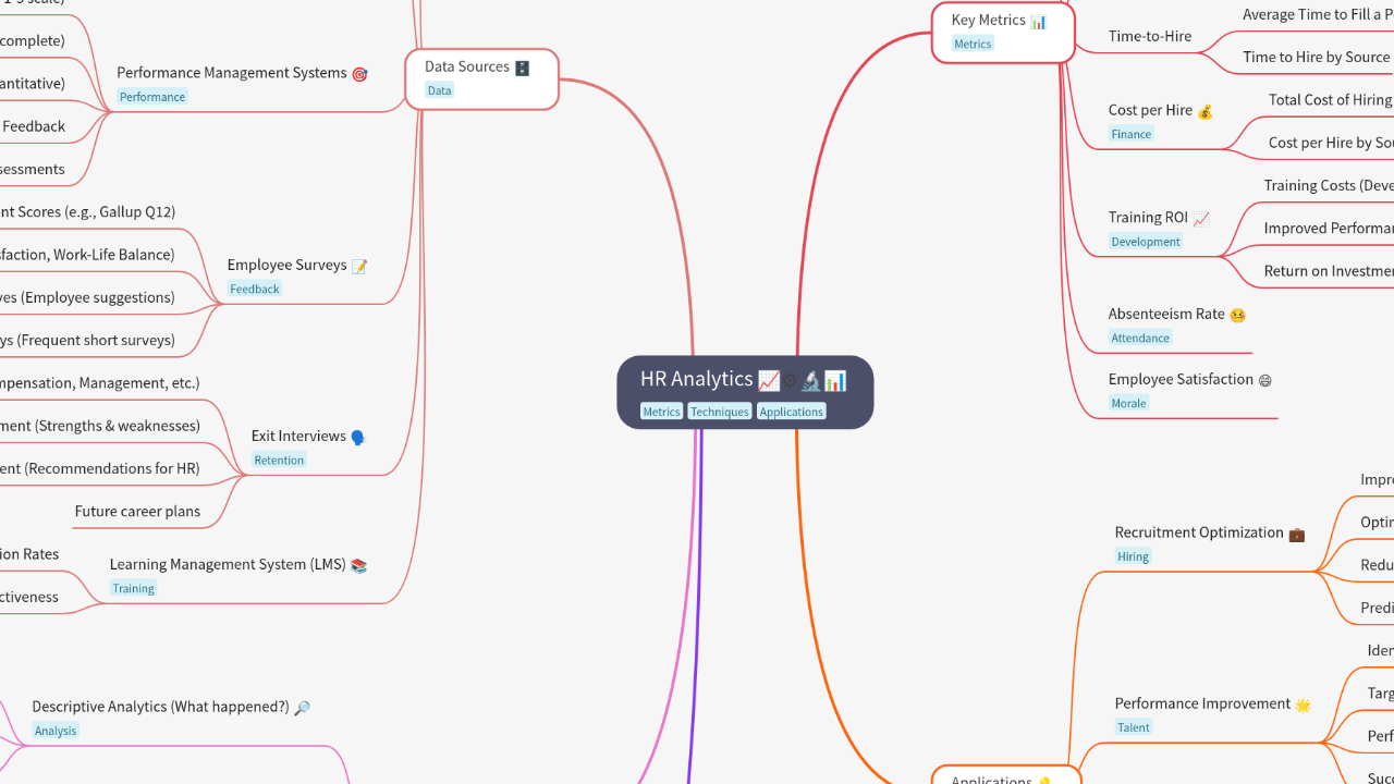 Unlock the full potential of your HR planning with structured human resources mind maps. These visuals simplify everything from recruitment to performance management, helping HR professionals, team leaders, and strategists make decisions faster and communicate more effectively. Dive into organized insights that improve team dynamics and structure.